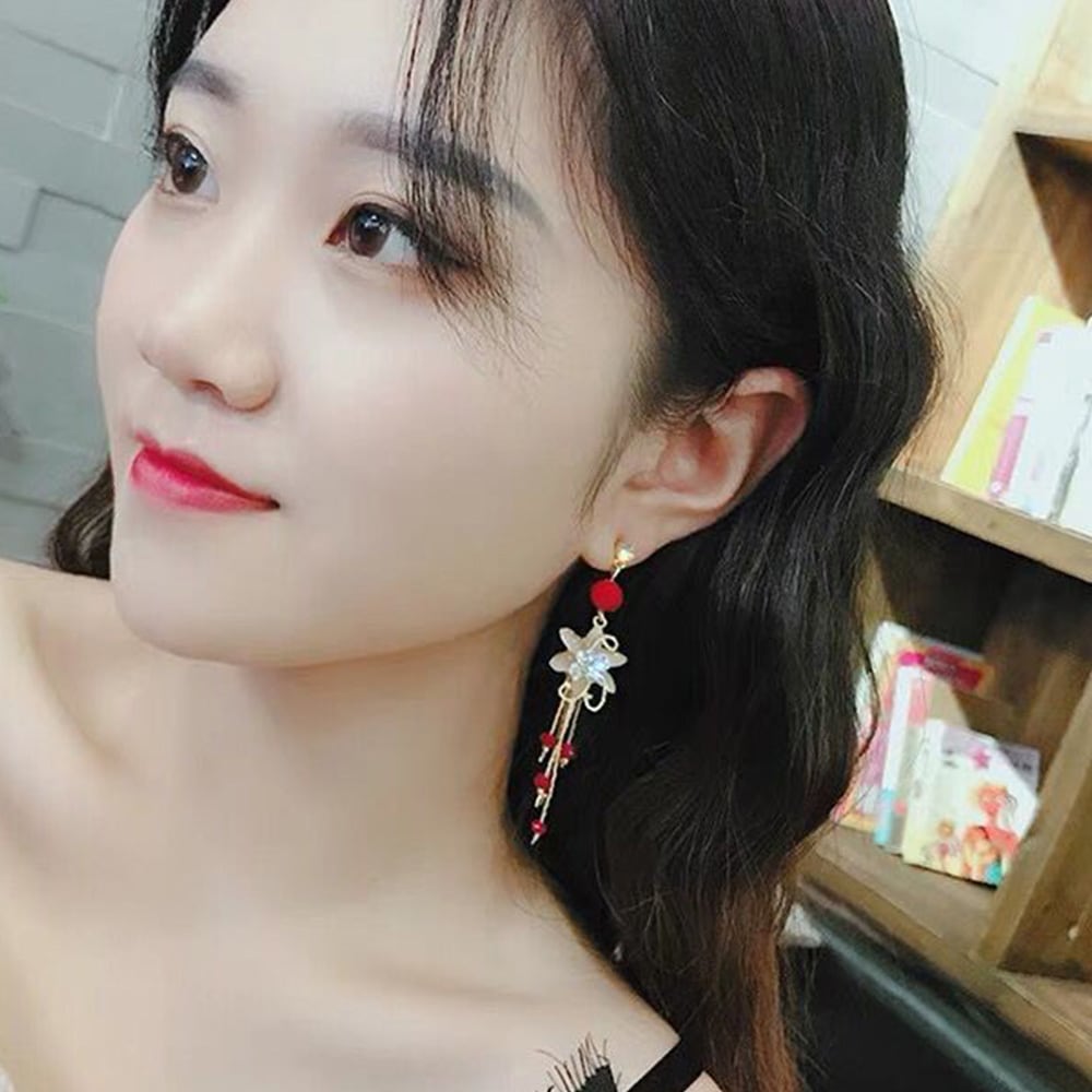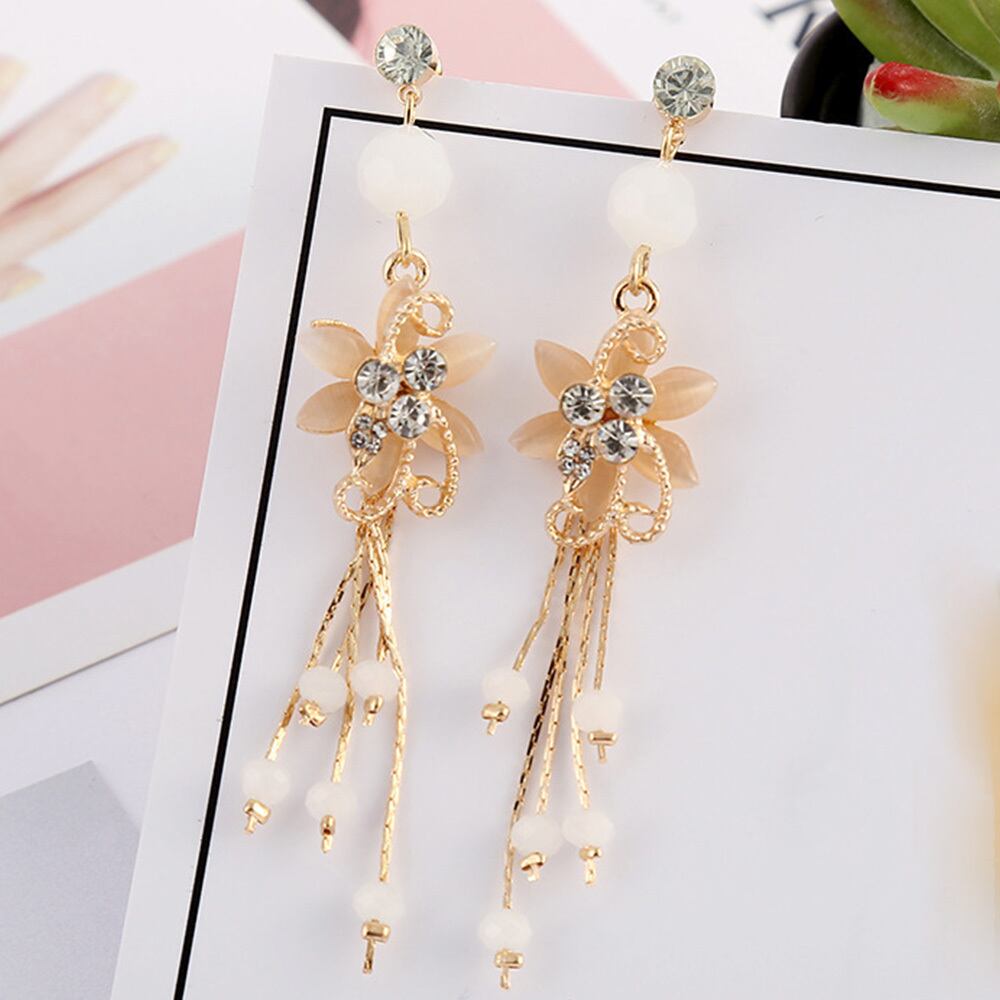 送料無料 タッセル ピアス ロングピアス ラインストーン チェーンピアス 花びら ギフト