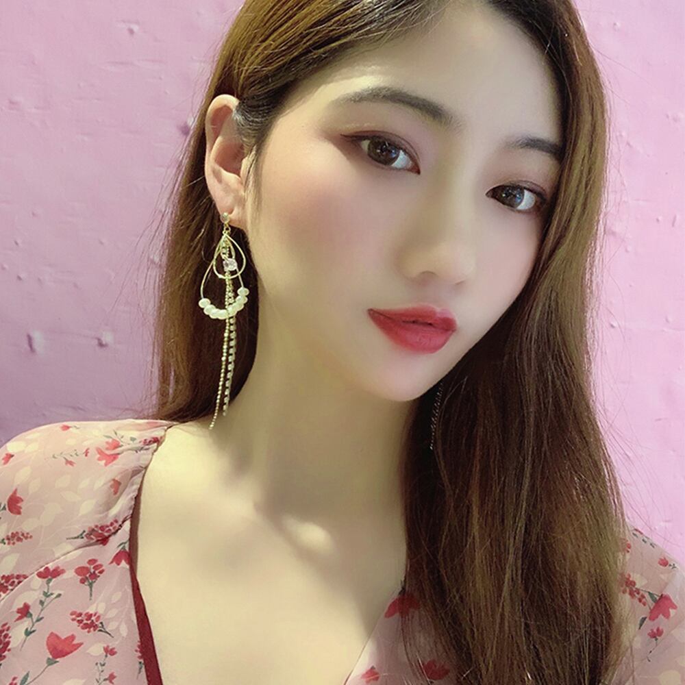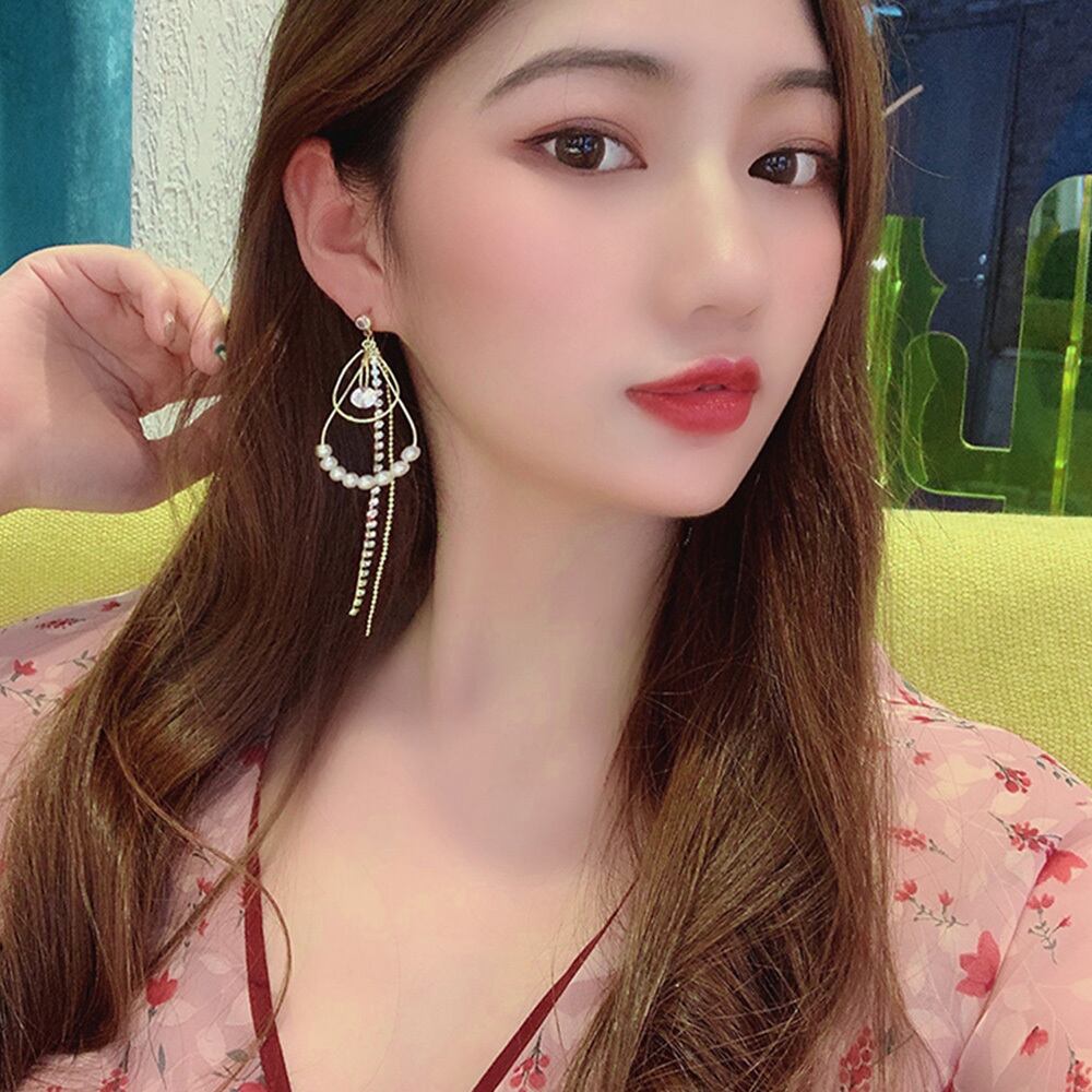 送料無料 ロングピアス しずく型フレーム ラインストーンチェーン パール ギフト