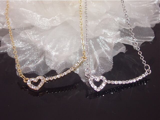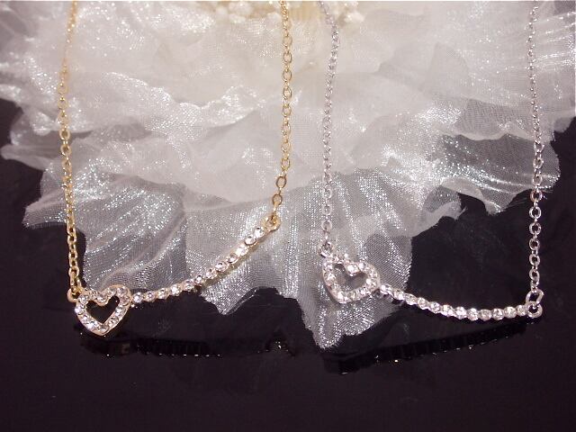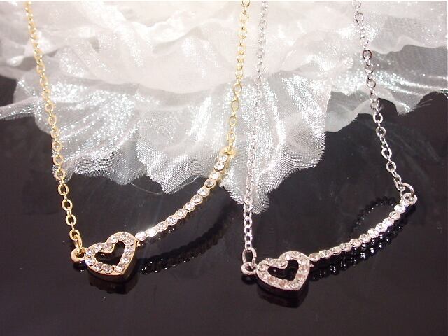 送料無料 ラインストーン・ハートカーブバーネックレス ギフト