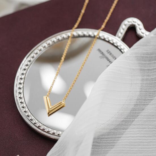 V字モチーフのステンレス製ネックレスです。