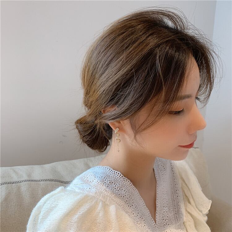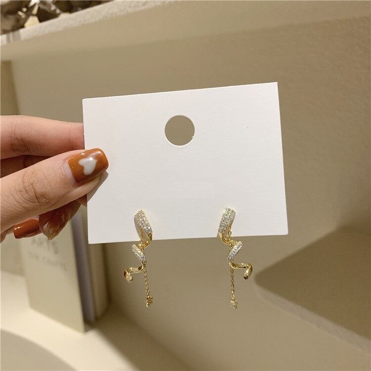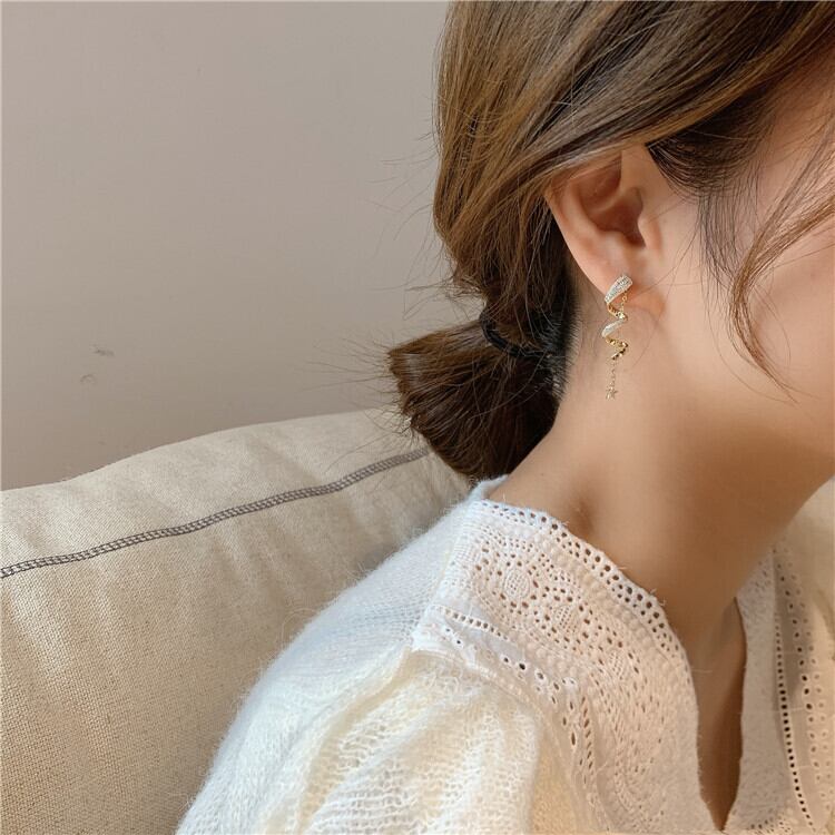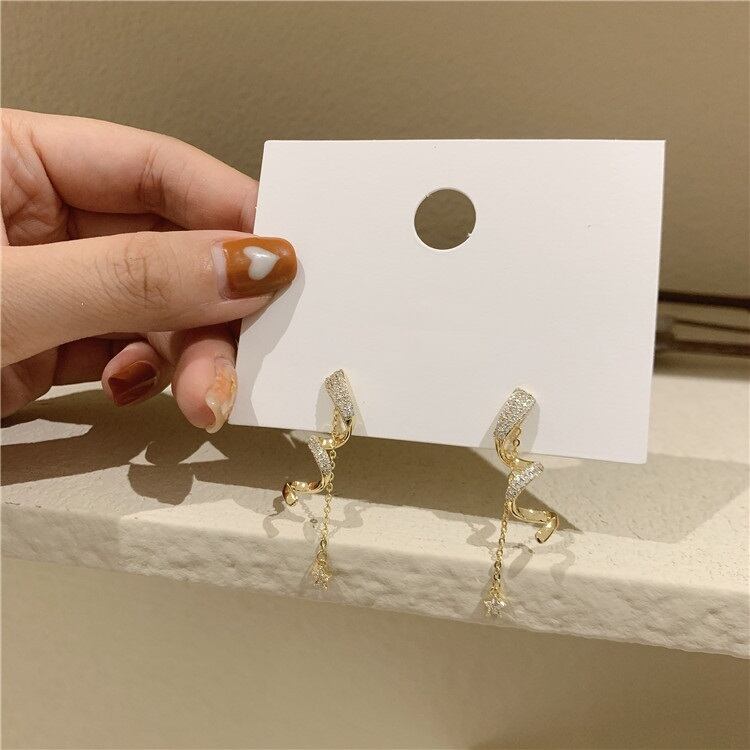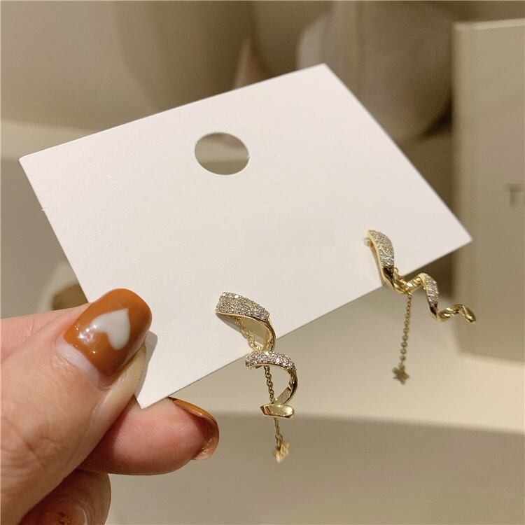 送料無料 ビジュー付きスターピアス チェーンピアス