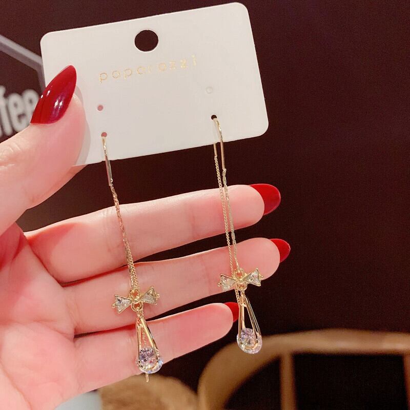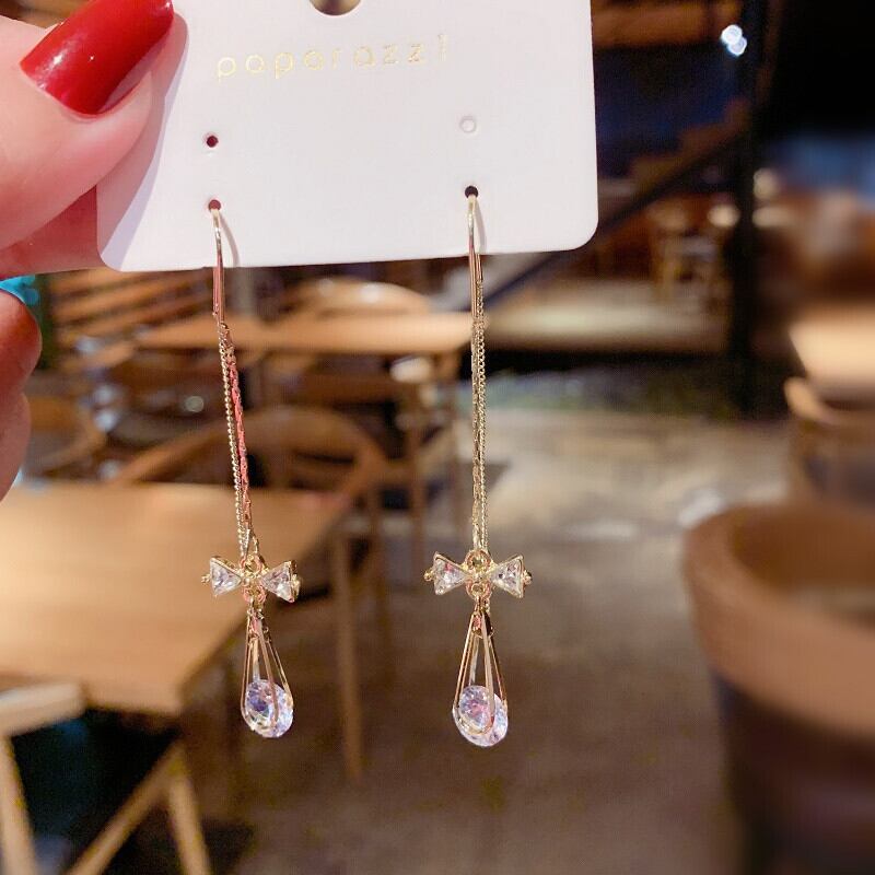 送料無料 リボン ビジュー ピアス ゴールド 揺れ感 ギフト